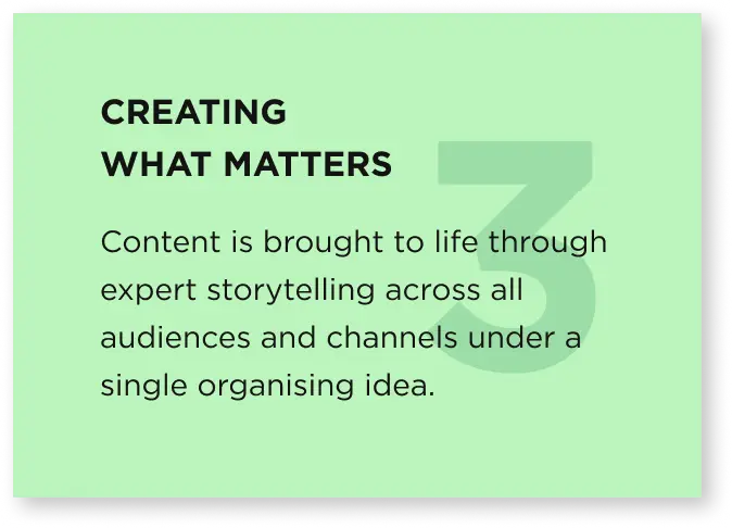 Content is brought to life through expert storytelling across all audiences and channels under a single organising idea.